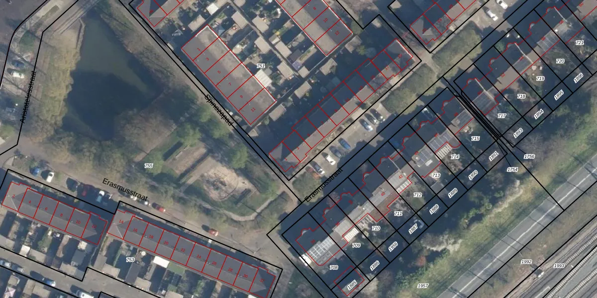 Het perceel waarop Erasmusstraat 3 staat heeft een oppervlakte van 4495 m². Dit is een zeer groot perceel. De perceeloppervlakte wordt geregistreerd door het Kadaster. Gedetailleerde informatie over de maten van dit perceel kunt u vinden in het rapport Kadastrale kaart met maatvoering van Erasmusstraat 3.