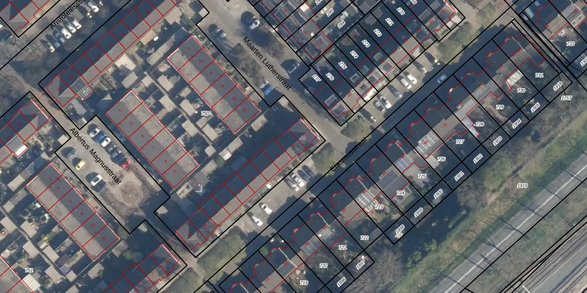Het perceel waarop Erasmusstraat 37 staat heeft een oppervlakte van 4250 m². Dit is een zeer groot perceel. De perceeloppervlakte wordt geregistreerd door het Kadaster. Gedetailleerde informatie over de maten van dit perceel kunt u vinden in het rapport Kadastrale kaart met maatvoering van Erasmusstraat 37.
