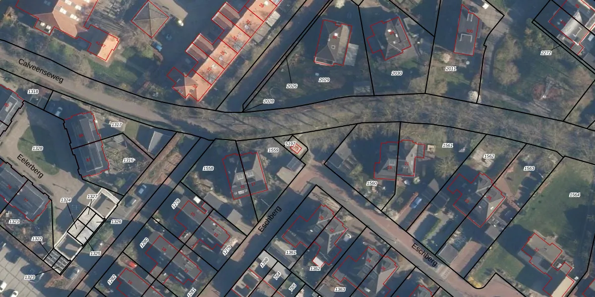 Het perceel waarop Eschberg 17-1 staat heeft een oppervlakte van 35 m². Dit is een klein perceel. De perceeloppervlakte wordt geregistreerd door het Kadaster. Gedetailleerde informatie over de maten van dit perceel kunt u vinden in het rapport Kadastrale kaart met maatvoering van Eschberg 17-1.