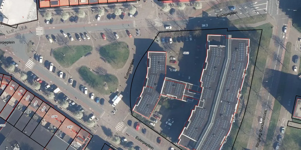 Het perceel waarop Euterpeplein 197 staat heeft een oppervlakte van 5805 m². Dit is een zeer groot perceel. De perceeloppervlakte wordt geregistreerd door het Kadaster. Gedetailleerde informatie over de maten van dit perceel kunt u vinden in het rapport Kadastrale kaart met maatvoering van Euterpeplein 197.