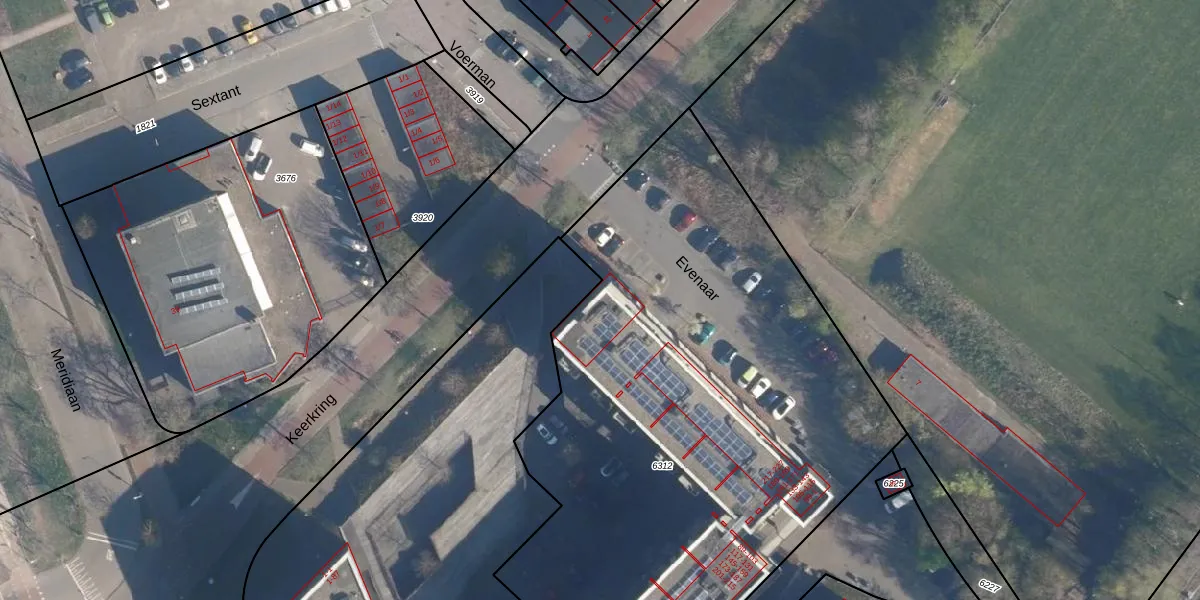Het perceel waarop Evenaar 143 staat heeft een oppervlakte van 4294 m². Dit is een zeer groot perceel. De perceeloppervlakte wordt geregistreerd door het Kadaster. Gedetailleerde informatie over de maten van dit perceel kunt u vinden in het rapport Kadastrale kaart met maatvoering van Evenaar 143.