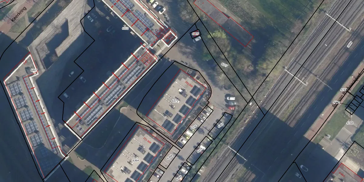 Het adres is gelegen op perceel 6371 in de sectie G en de kadastrale gemeente Amersfoort. De kadastrale aanduiding is aldus AMF00-G-6371. De oppervlakte van het perceel is 1077 m². Dat is groter dan gemiddeld in Amersfoort, waar de gemiddelde perceeloppervlakte op 960,23 m² ligt. Het grootste perceel in de kadastrale gemeente is 1,12 km². Het kleinste perceel heeft een oppervlakte van 0 m². Op het perceel zijn 20 adressen aanwezig. De laatste wijziging in het de Basisregistratie Kadaster (BRK) was op 06-07-2020.