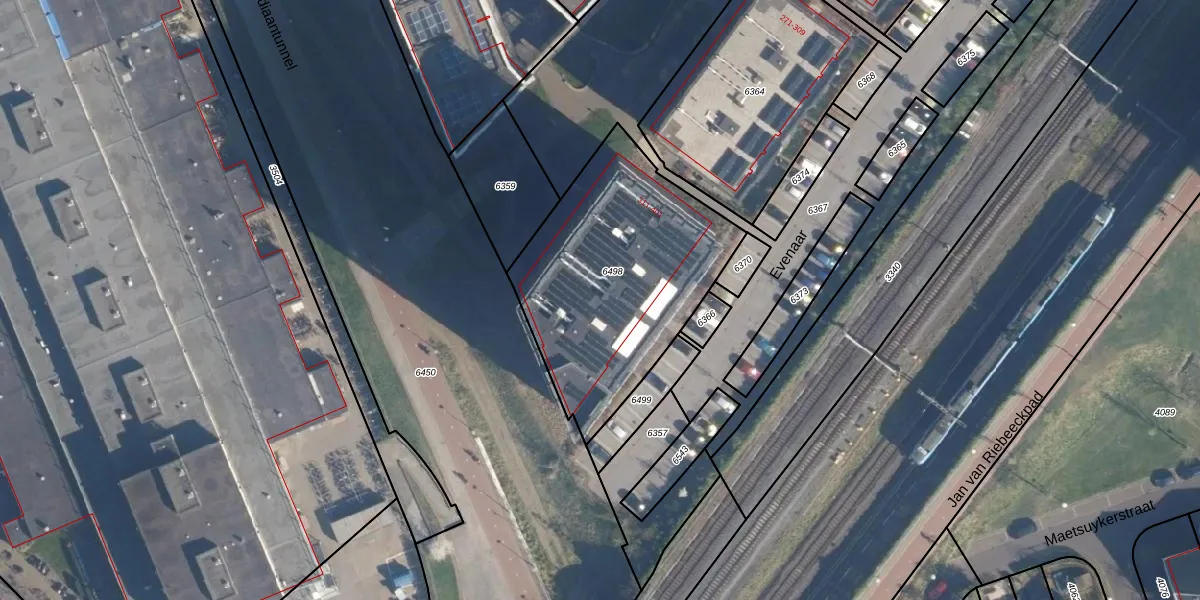 Het perceel waarop Evenaar 379 staat heeft een oppervlakte van 1071 m². Dit is een zeer groot perceel. De perceeloppervlakte wordt geregistreerd door het Kadaster. Gedetailleerde informatie over de maten van dit perceel kunt u vinden in het rapport Kadastrale kaart met maatvoering van Evenaar 379.