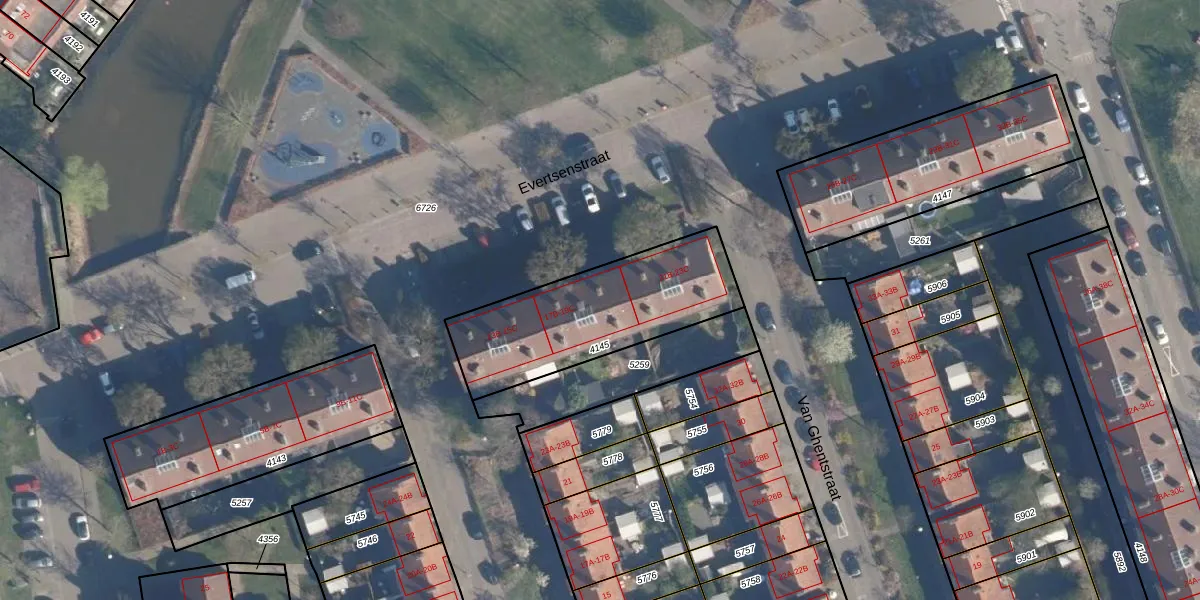 Het perceel waarop Evertsenstraat 19-B staat heeft een oppervlakte van 680 m². Dit is een groot perceel. De perceeloppervlakte wordt geregistreerd door het Kadaster. Gedetailleerde informatie over de maten van dit perceel kunt u vinden in het rapport Kadastrale kaart met maatvoering van Evertsenstraat 19-B.
