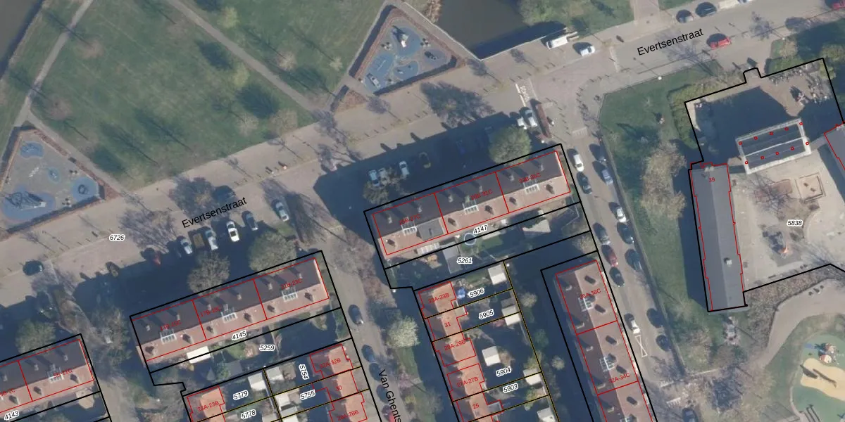 Evertsenstraat 27-A is gelegen op kadastraal perceel AMF00G4147. Deze kadastrale aanduiding is uniek en wordt gebruikt door het Kadaster om eigendomsrechten en andere zakelijke rechten vast te leggen. Het perceel maakt onderdeel uit van de kadastrale gemeente Amersfoort.