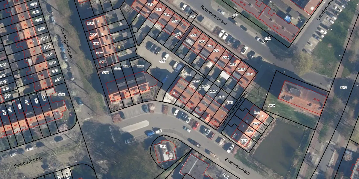 Het perceel waarop Evertsenstraat 80 staat heeft een oppervlakte van 176 m². Dit is een middelgroot perceel. De perceeloppervlakte wordt geregistreerd door het Kadaster. Gedetailleerde informatie over de maten van dit perceel kunt u vinden in het rapport Kadastrale kaart met maatvoering van Evertsenstraat 80.