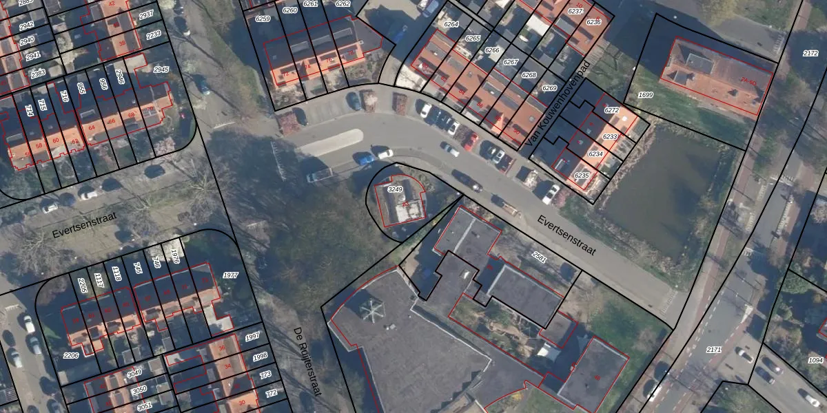 Het perceel waarop Evertsenstraat 83 staat heeft een oppervlakte van 290 m². Dit is een middelgroot perceel. De perceeloppervlakte wordt geregistreerd door het Kadaster. Gedetailleerde informatie over de maten van dit perceel kunt u vinden in het rapport Kadastrale kaart met maatvoering van Evertsenstraat 83.