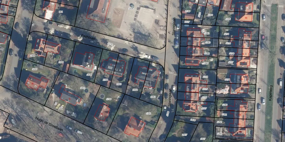 Gebruik de zoekbalk of klik op een perceel voor informatie over de adressen binnen dit perceel.