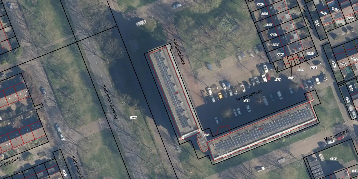 Het perceel waarop Ferguutplaats 19 staat heeft een oppervlakte van 1872 m². Dit is een zeer groot perceel. De perceeloppervlakte wordt geregistreerd door het Kadaster. Gedetailleerde informatie over de maten van dit perceel kunt u vinden in het rapport Kadastrale kaart met maatvoering van Ferguutplaats 19.