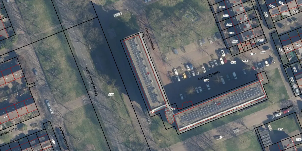 Het perceel waarop Ferguutplaats 43 staat heeft een oppervlakte van 1872 m². Dit is een zeer groot perceel. De perceeloppervlakte wordt geregistreerd door het Kadaster. Gedetailleerde informatie over de maten van dit perceel kunt u vinden in het rapport Kadastrale kaart met maatvoering van Ferguutplaats 43.