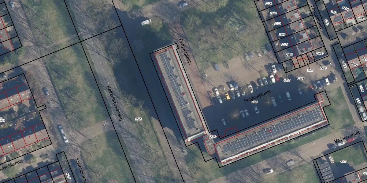 Het perceel waarop Ferguutplaats 67 staat heeft een oppervlakte van 1872 m². Dit is een zeer groot perceel. De perceeloppervlakte wordt geregistreerd door het Kadaster. Gedetailleerde informatie over de maten van dit perceel kunt u vinden in het rapport Kadastrale kaart met maatvoering van Ferguutplaats 67.