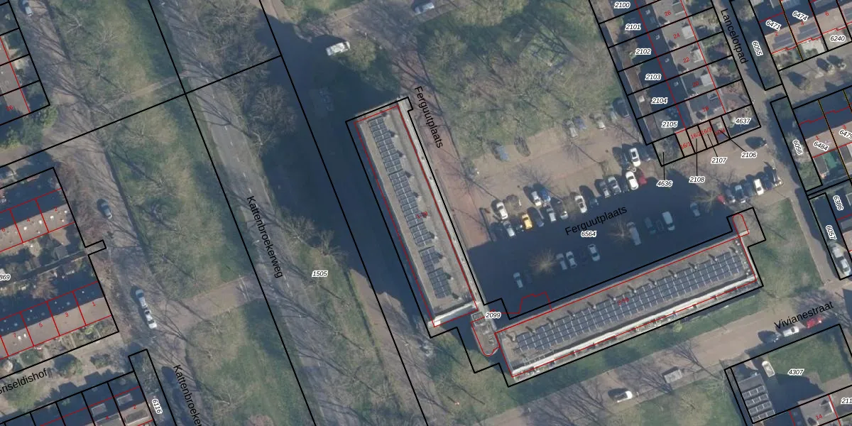 Het perceel waarop Ferguutplaats 69 staat heeft een oppervlakte van 1872 m². Dit is een zeer groot perceel. De perceeloppervlakte wordt geregistreerd door het Kadaster. Gedetailleerde informatie over de maten van dit perceel kunt u vinden in het rapport Kadastrale kaart met maatvoering van Ferguutplaats 69.