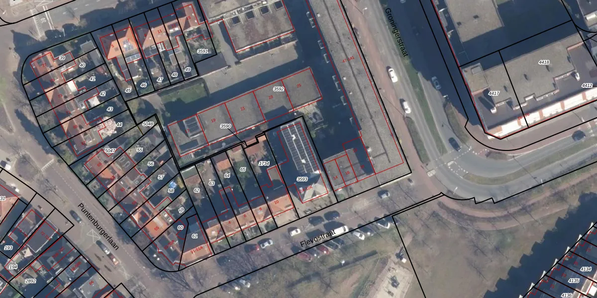 Het perceel waarop Flevostraat 12-H staat heeft een oppervlakte van 447 m². Dit is een groot perceel. De perceeloppervlakte wordt geregistreerd door het Kadaster. Gedetailleerde informatie over de maten van dit perceel kunt u vinden in het rapport Kadastrale kaart met maatvoering van Flevostraat 12-H.