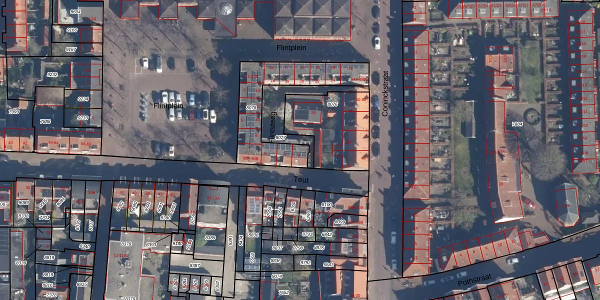 Het perceel waarop Flintsteeg 2 staat heeft een oppervlakte van 660 m². Dit is een groot perceel. De perceeloppervlakte wordt geregistreerd door het Kadaster. Gedetailleerde informatie over de maten van dit perceel kunt u vinden in het rapport Kadastrale kaart met maatvoering van Flintsteeg 2.