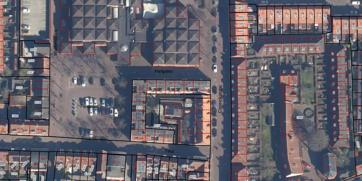 Het perceel waarop Flintsteeg 22 staat heeft een oppervlakte van 660 m². Dit is een groot perceel. De perceeloppervlakte wordt geregistreerd door het Kadaster. Gedetailleerde informatie over de maten van dit perceel kunt u vinden in het rapport Kadastrale kaart met maatvoering van Flintsteeg 22.