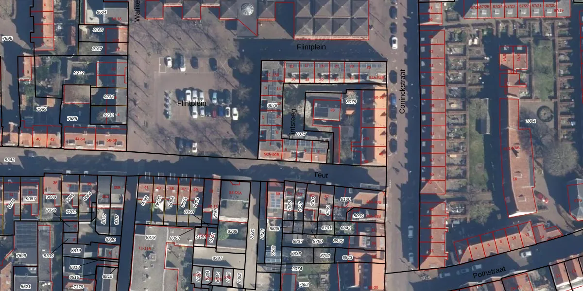 Het perceel waarop Flintsteeg 6 staat heeft een oppervlakte van 660 m². Dit is een groot perceel. De perceeloppervlakte wordt geregistreerd door het Kadaster. Gedetailleerde informatie over de maten van dit perceel kunt u vinden in het rapport Kadastrale kaart met maatvoering van Flintsteeg 6.