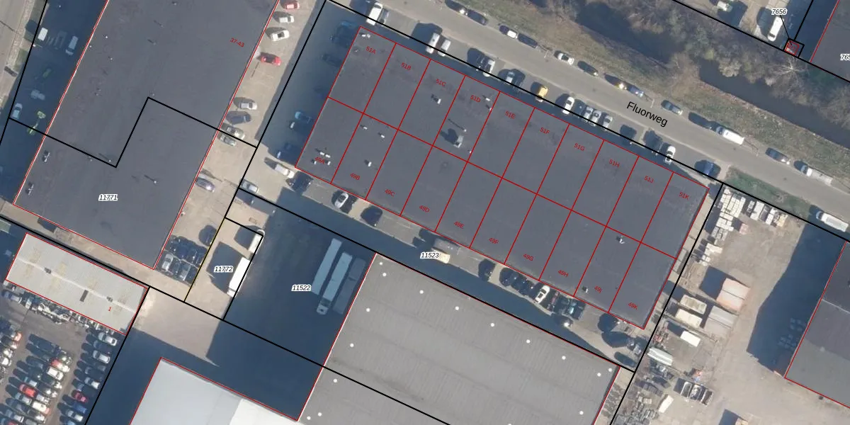 Het perceel waarop Fluorweg 49-D staat heeft een oppervlakte van 5065 m². Dit is een zeer groot perceel. De perceeloppervlakte wordt geregistreerd door het Kadaster. Gedetailleerde informatie over de maten van dit perceel kunt u vinden in het rapport Kadastrale kaart met maatvoering van Fluorweg 49-D.