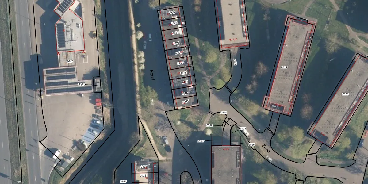 Het perceel waarop Forel 16 staat heeft een oppervlakte van 71 m². Dit is een klein perceel. De perceeloppervlakte wordt geregistreerd door het Kadaster. Gedetailleerde informatie over de maten van dit perceel kunt u vinden in het rapport Kadastrale kaart met maatvoering van Forel 16.