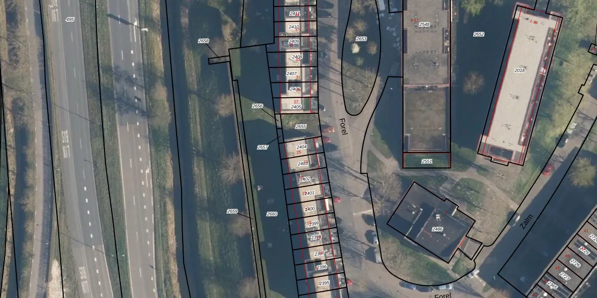 Forel 25 is gelegen op kadastraal perceel AMF00P2404. Deze kadastrale aanduiding is uniek en wordt gebruikt door het Kadaster om eigendomsrechten en andere zakelijke rechten vast te leggen. Het perceel maakt onderdeel uit van de kadastrale gemeente Amersfoort.