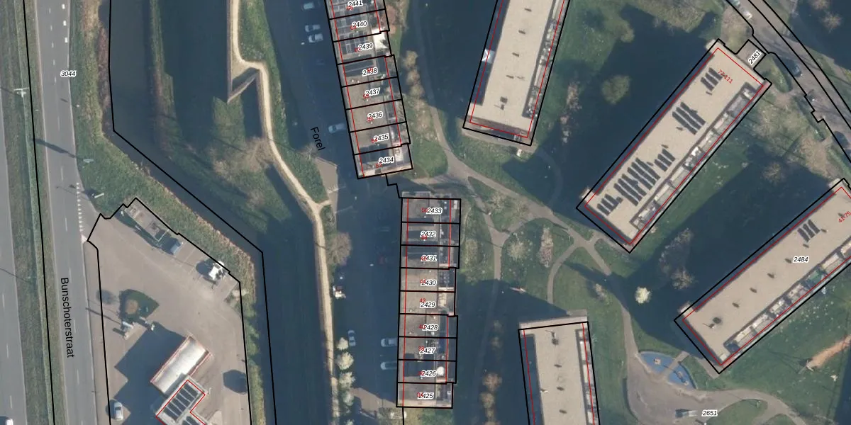 Forel 50 is gelegen op kadastraal perceel AMF00P2433. Deze kadastrale aanduiding is uniek en wordt gebruikt door het Kadaster om eigendomsrechten en andere zakelijke rechten vast te leggen. Het perceel maakt onderdeel uit van de kadastrale gemeente Amersfoort.