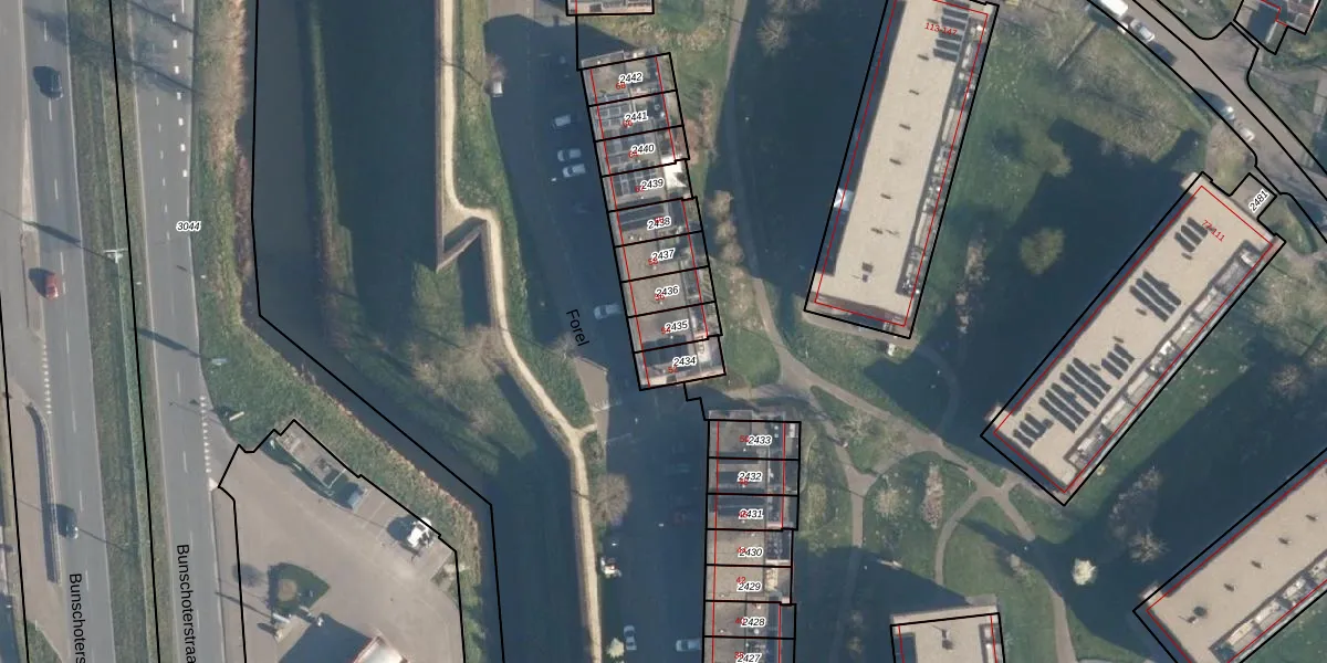 Gebruik de zoekbalk of klik op een perceel voor informatie over de adressen binnen dit perceel.
