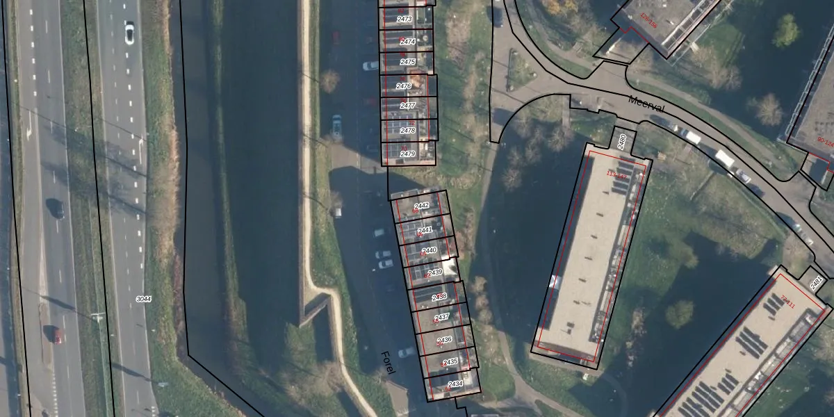 Gebruik de zoekbalk of klik op een perceel voor informatie over de adressen binnen dit perceel.