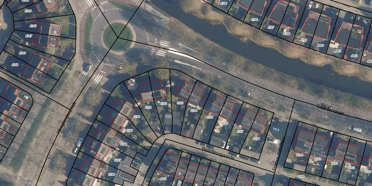 Het perceel waarop Gaardendreef 32 staat heeft een oppervlakte van 295 m². Dit is een middelgroot perceel. De perceeloppervlakte wordt geregistreerd door het Kadaster. Gedetailleerde informatie over de maten van dit perceel kunt u vinden in het rapport Kadastrale kaart met maatvoering van Gaardendreef 32.