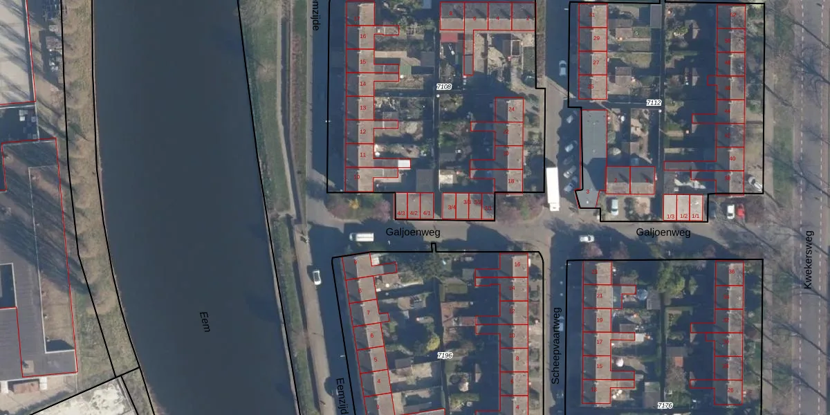Het perceel waarop Galjoenweg 4-2 staat heeft een oppervlakte van 2678 m². Dit is een zeer groot perceel. De perceeloppervlakte wordt geregistreerd door het Kadaster. Gedetailleerde informatie over de maten van dit perceel kunt u vinden in het rapport Kadastrale kaart met maatvoering van Galjoenweg 4-2.