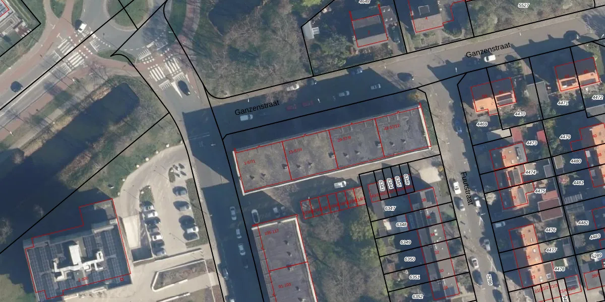 Het perceel waarop Ganzenstraat 25 staat heeft een oppervlakte van 9258 m². Dit is een zeer groot perceel. De perceeloppervlakte wordt geregistreerd door het Kadaster. Gedetailleerde informatie over de maten van dit perceel kunt u vinden in het rapport Kadastrale kaart met maatvoering van Ganzenstraat 25.