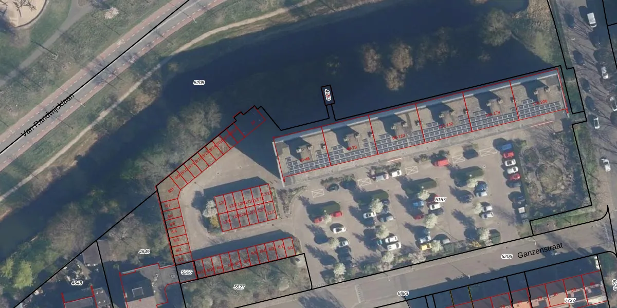 Het perceel waarop Ganzenstraat 36 staat heeft een oppervlakte van 6550 m². Dit is een zeer groot perceel. De perceeloppervlakte wordt geregistreerd door het Kadaster. Gedetailleerde informatie over de maten van dit perceel kunt u vinden in het rapport Kadastrale kaart met maatvoering van Ganzenstraat 36.