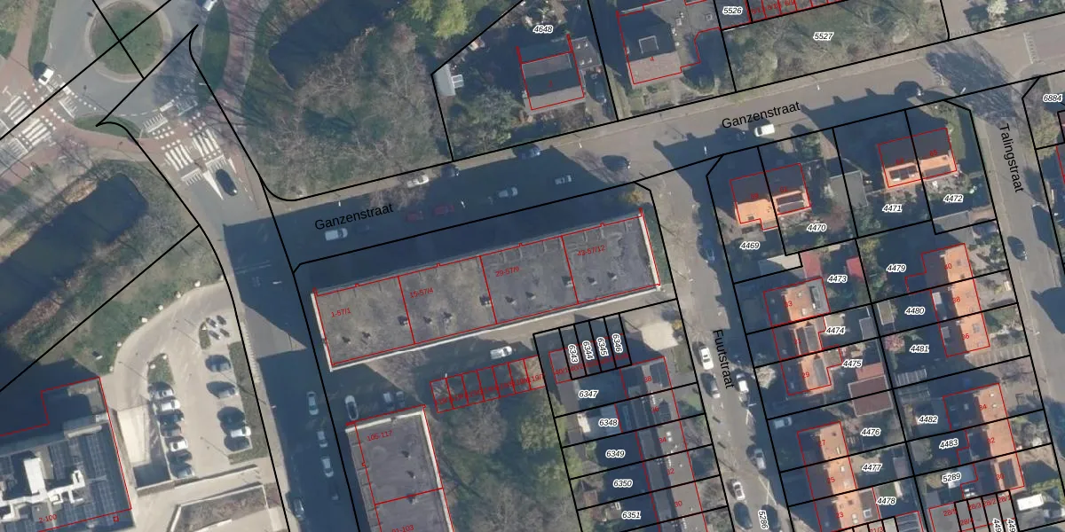 Het perceel waarop Ganzenstraat 41 staat heeft een oppervlakte van 9258 m². Dit is een zeer groot perceel. De perceeloppervlakte wordt geregistreerd door het Kadaster. Gedetailleerde informatie over de maten van dit perceel kunt u vinden in het rapport Kadastrale kaart met maatvoering van Ganzenstraat 41.