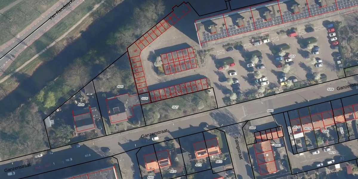 Het perceel waarop Ganzenstraat 6-6 staat heeft een oppervlakte van 6550 m². Dit is een zeer groot perceel. De perceeloppervlakte wordt geregistreerd door het Kadaster. Gedetailleerde informatie over de maten van dit perceel kunt u vinden in het rapport Kadastrale kaart met maatvoering van Ganzenstraat 6-6.