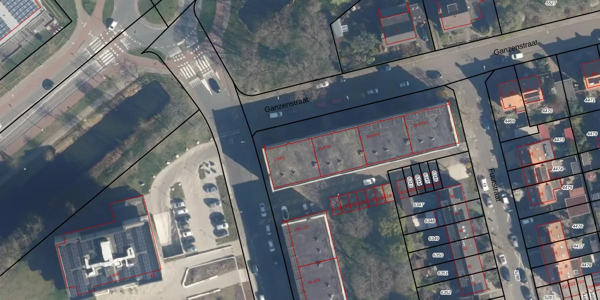Het perceel waarop Ganzenstraat 7 staat heeft een oppervlakte van 9258 m². Dit is een zeer groot perceel. De perceeloppervlakte wordt geregistreerd door het Kadaster. Gedetailleerde informatie over de maten van dit perceel kunt u vinden in het rapport Kadastrale kaart met maatvoering van Ganzenstraat 7.