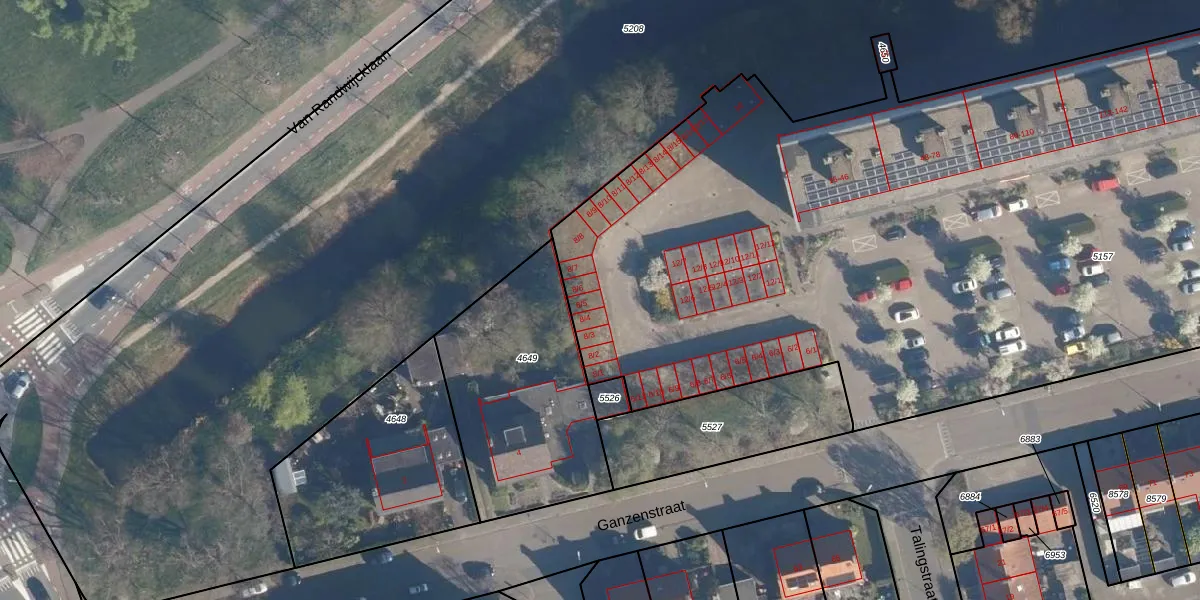 Het perceel waarop Ganzenstraat 8-5 staat heeft een oppervlakte van 6550 m². Dit is een zeer groot perceel. De perceeloppervlakte wordt geregistreerd door het Kadaster. Gedetailleerde informatie over de maten van dit perceel kunt u vinden in het rapport Kadastrale kaart met maatvoering van Ganzenstraat 8-5.