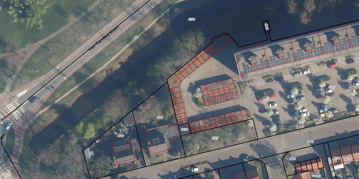 Het perceel waarop Ganzenstraat 8-7 staat heeft een oppervlakte van 6550 m². Dit is een zeer groot perceel. De perceeloppervlakte wordt geregistreerd door het Kadaster. Gedetailleerde informatie over de maten van dit perceel kunt u vinden in het rapport Kadastrale kaart met maatvoering van Ganzenstraat 8-7.