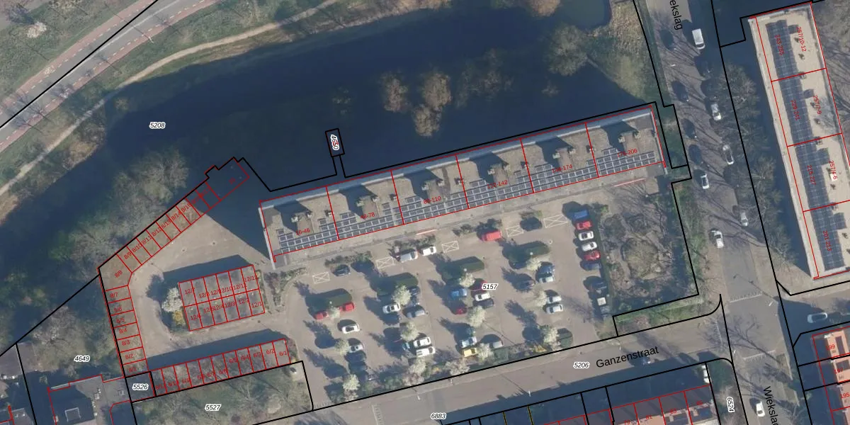 Het perceel waarop Ganzenstraat 80 staat heeft een oppervlakte van 6550 m². Dit is een zeer groot perceel. De perceeloppervlakte wordt geregistreerd door het Kadaster. Gedetailleerde informatie over de maten van dit perceel kunt u vinden in het rapport Kadastrale kaart met maatvoering van Ganzenstraat 80.