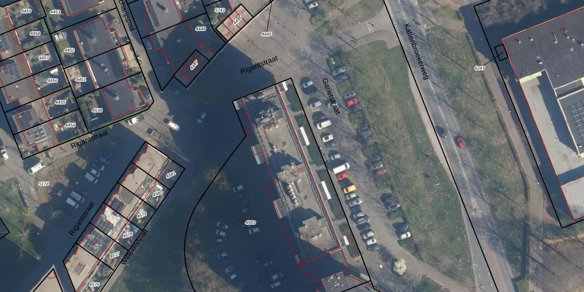 Het perceel waarop Garietstraat 61 staat heeft een oppervlakte van 3316 m². Dit is een zeer groot perceel. De perceeloppervlakte wordt geregistreerd door het Kadaster. Gedetailleerde informatie over de maten van dit perceel kunt u vinden in het rapport Kadastrale kaart met maatvoering van Garietstraat 61.