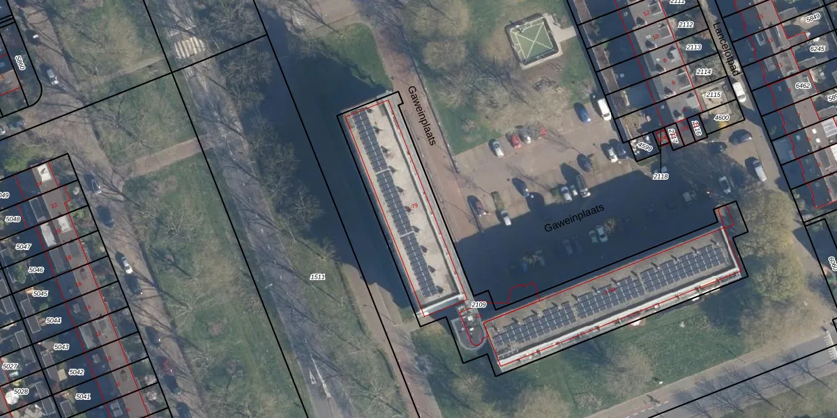 Het perceel waarop Gaweinplaats 41 staat heeft een oppervlakte van 1874 m². Dit is een zeer groot perceel. De perceeloppervlakte wordt geregistreerd door het Kadaster. Gedetailleerde informatie over de maten van dit perceel kunt u vinden in het rapport Kadastrale kaart met maatvoering van Gaweinplaats 41.