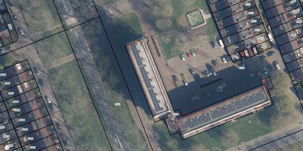 Het perceel waarop Gaweinplaats 51 staat heeft een oppervlakte van 1874 m². Dit is een zeer groot perceel. De perceeloppervlakte wordt geregistreerd door het Kadaster. Gedetailleerde informatie over de maten van dit perceel kunt u vinden in het rapport Kadastrale kaart met maatvoering van Gaweinplaats 51.