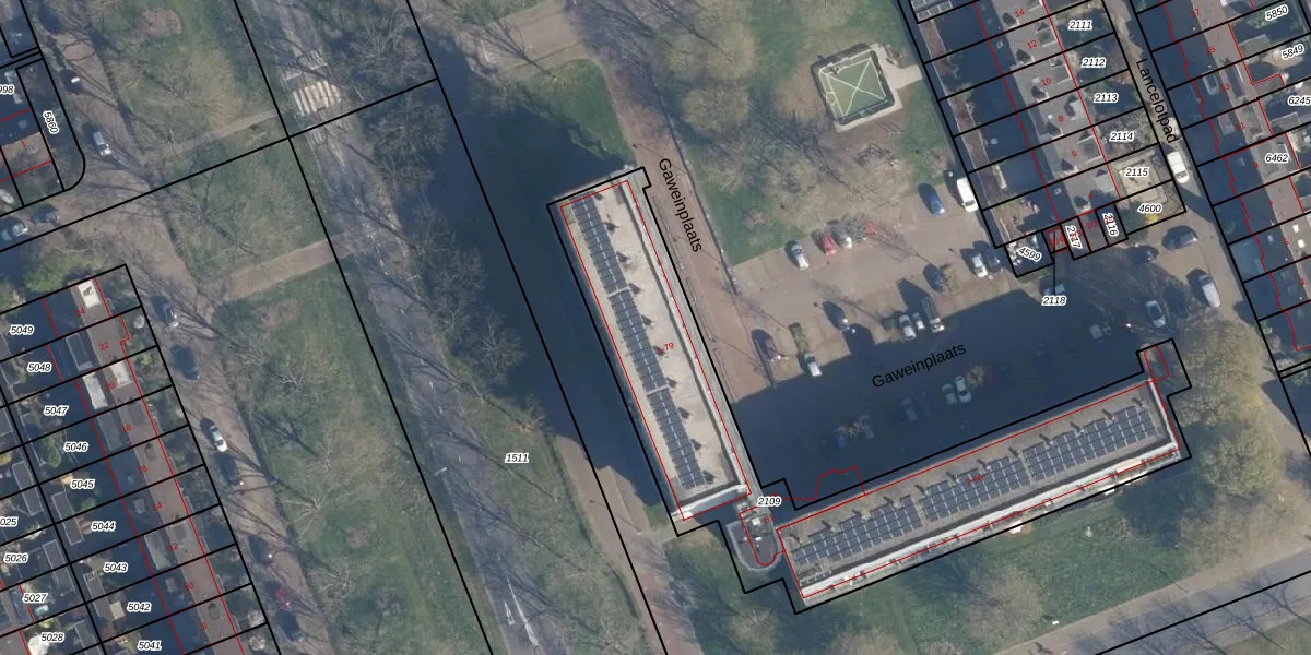 Het perceel waarop Gaweinplaats 65 staat heeft een oppervlakte van 1874 m². Dit is een zeer groot perceel. De perceeloppervlakte wordt geregistreerd door het Kadaster. Gedetailleerde informatie over de maten van dit perceel kunt u vinden in het rapport Kadastrale kaart met maatvoering van Gaweinplaats 65.