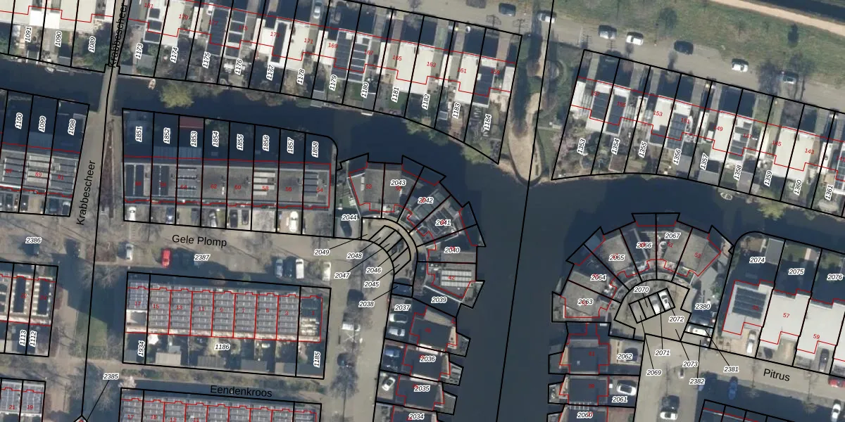 Het perceel waarop Gele Plomp 48 staat heeft een oppervlakte van 96 m². Dit is een klein perceel. De perceeloppervlakte wordt geregistreerd door het Kadaster. Gedetailleerde informatie over de maten van dit perceel kunt u vinden in het rapport Kadastrale kaart met maatvoering van Gele Plomp 48.