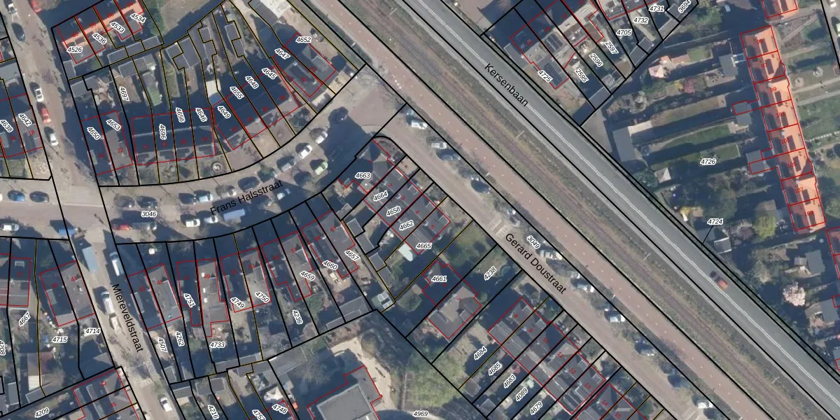 Gebruik de zoekbalk of klik op een perceel voor informatie over de adressen binnen dit perceel.