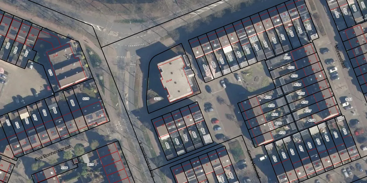 Het adres is gelegen op perceel 3213 in de sectie K en de kadastrale gemeente Amersfoort. De kadastrale aanduiding is aldus AMF00-K-3213. Het perceel is kleiner dan gemiddeld in Amersfoort. Het perceel is 730 m² groot, terwijl het gemiddelde ligt op 959,96 m². De grootste perceeloppervlakte in de kadastrale gemeente is 1,12 km². De kleinste oppervlakte bedraagt 0 m². Er zijn 11 adressen aanwezig op het perceel. De laatste wijziging in het de Basisregistratie Kadaster (BRK) was op 19-09-1997.