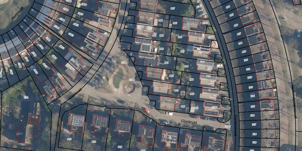 Het perceel waarop Glaskruid 19 staat heeft een oppervlakte van 252 m². Dit is een middelgroot perceel. De perceeloppervlakte wordt geregistreerd door het Kadaster. Gedetailleerde informatie over de maten van dit perceel kunt u vinden in het rapport Kadastrale kaart met maatvoering van Glaskruid 19.