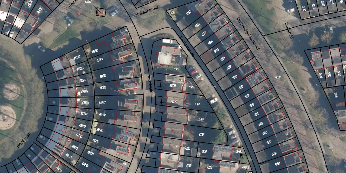 Gebruik de zoekbalk of klik op een perceel voor informatie over de adressen binnen dit perceel.