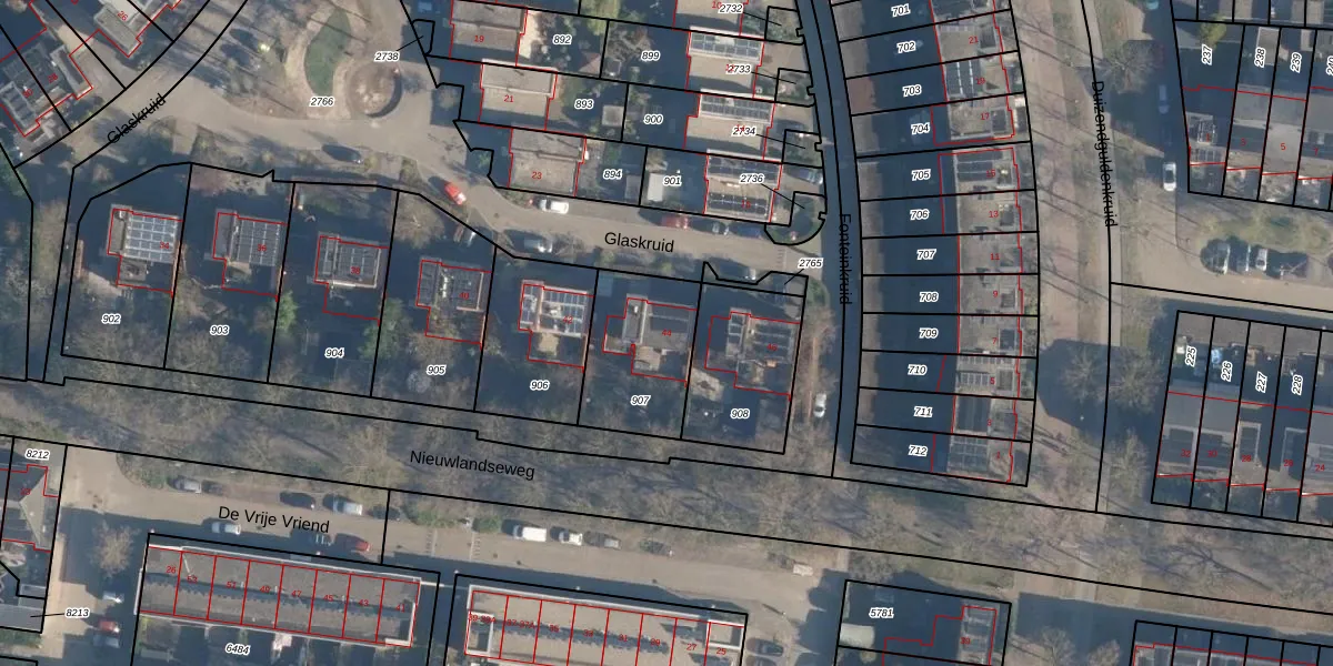 Het perceel waarop Glaskruid 44 staat heeft een oppervlakte van 372 m². Dit is een groot perceel. De perceeloppervlakte wordt geregistreerd door het Kadaster. Gedetailleerde informatie over de maten van dit perceel kunt u vinden in het rapport Kadastrale kaart met maatvoering van Glaskruid 44.