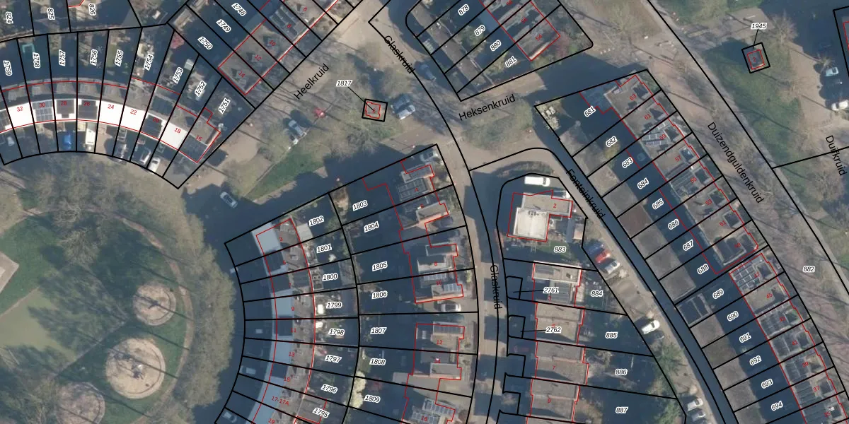 Gebruik de zoekbalk of klik op een perceel voor informatie over de adressen binnen dit perceel.