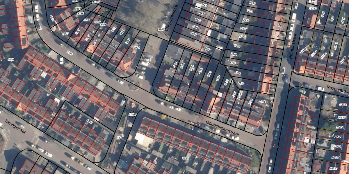 Het perceel waarop Goudsbloemstraat 21 staat heeft een oppervlakte van 175 m². Dit is een middelgroot perceel. De perceeloppervlakte wordt geregistreerd door het Kadaster. Gedetailleerde informatie over de maten van dit perceel kunt u vinden in het rapport Kadastrale kaart met maatvoering van Goudsbloemstraat 21.