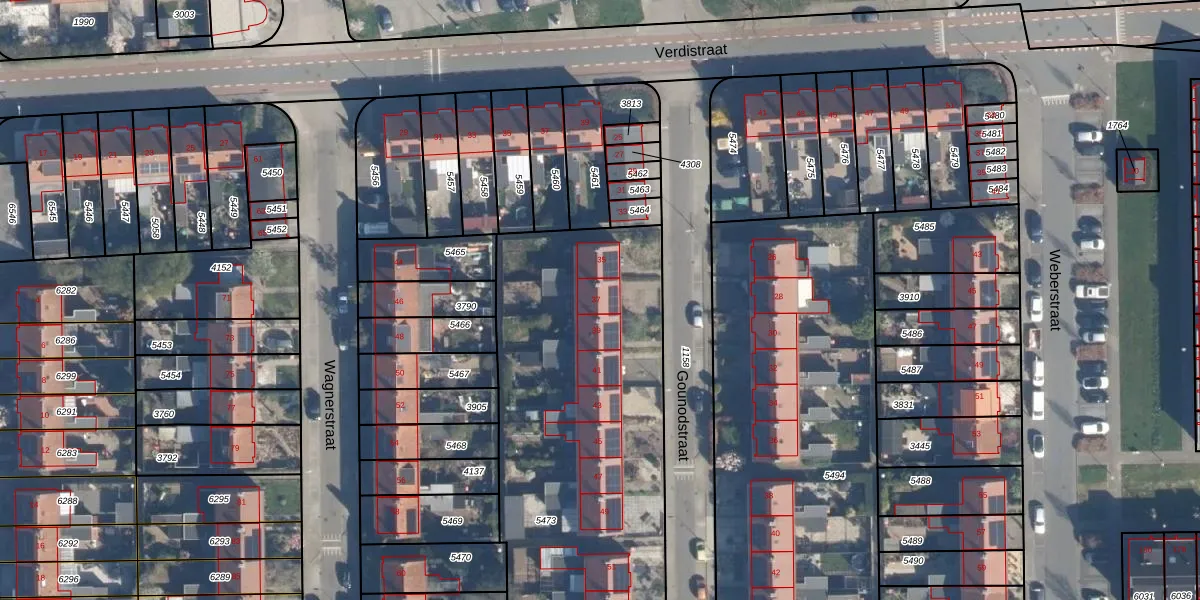 Het perceel waarop Gounodstraat 37 staat heeft een oppervlakte van 2505 m². Dit is een zeer groot perceel. De perceeloppervlakte wordt geregistreerd door het Kadaster. Gedetailleerde informatie over de maten van dit perceel kunt u vinden in het rapport Kadastrale kaart met maatvoering van Gounodstraat 37.