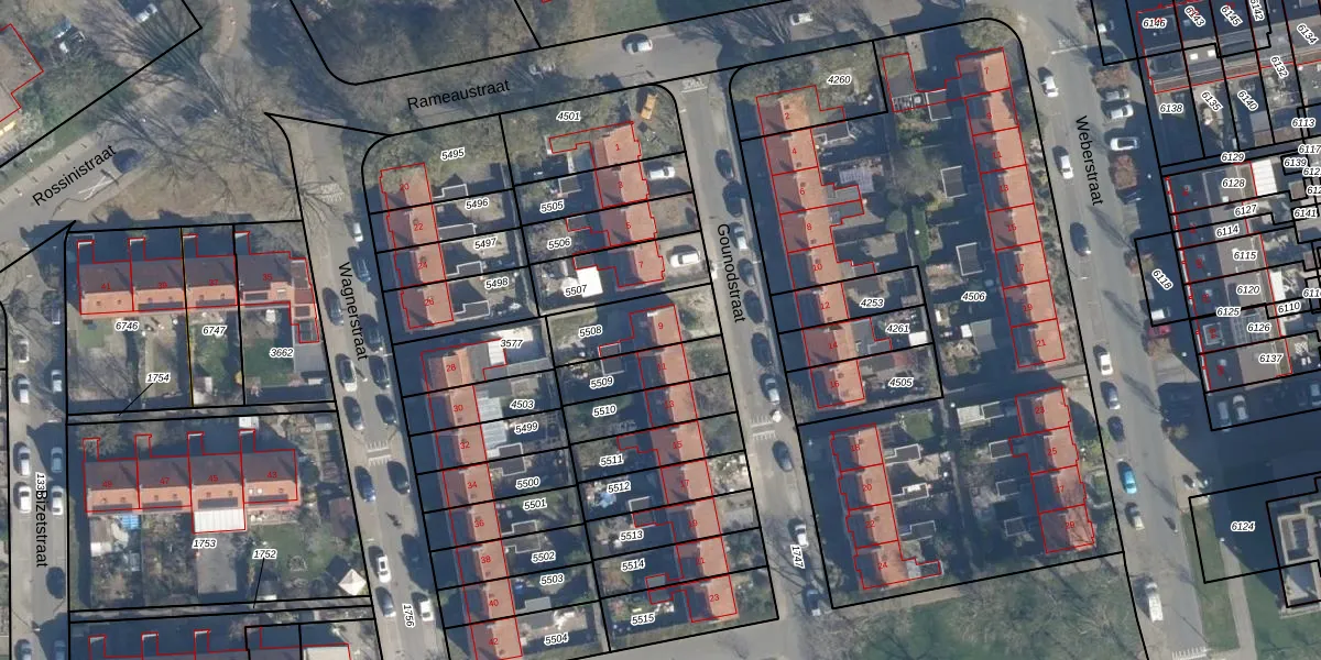 Het perceel waarop Gounodstraat 9 staat heeft een oppervlakte van 205 m². Dit is een middelgroot perceel. De perceeloppervlakte wordt geregistreerd door het Kadaster. Gedetailleerde informatie over de maten van dit perceel kunt u vinden in het rapport Kadastrale kaart met maatvoering van Gounodstraat 9.